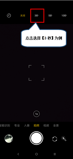 3、在屏幕上方会显示“关闭”、“3秒”、“5秒”、“10秒”,点击选择【3秒】为例。