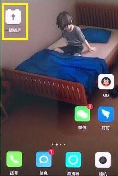 然后在手机屏幕下方找到并点击【一键锁屏】即可将一键锁屏添加到手机桌面上,