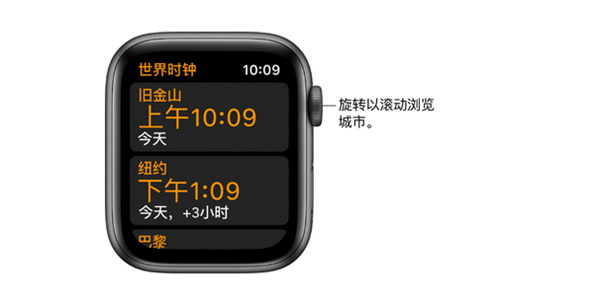 2.旋转数码表冠或轻扫屏幕来滚动浏览列表。