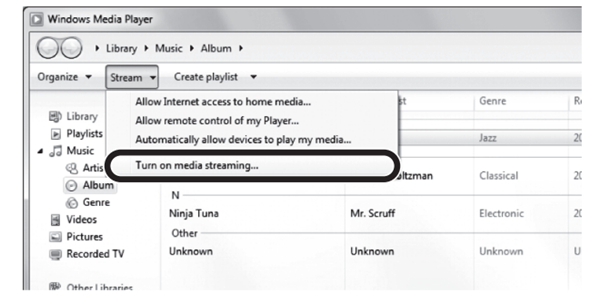 2、选择 “Stream”,然后 “Turn on media streaming...”。