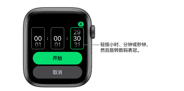 3.轻点小时、分钟或秒钟,旋转数码表冠进行调整。