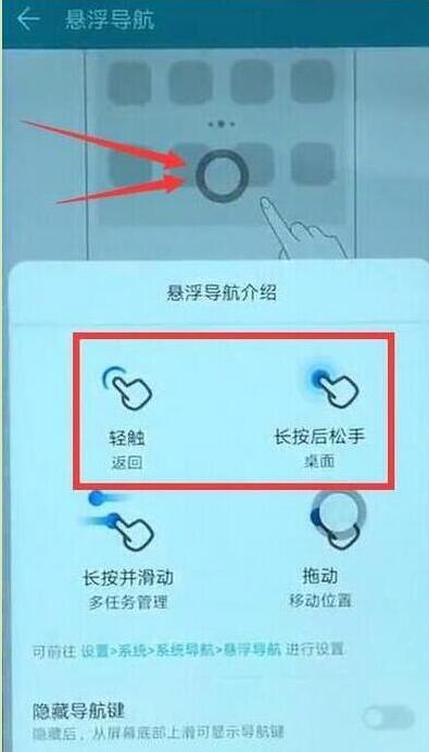 方法三、在使用悬浮导航的情况下,点击悬浮球可返回上一级,长按可返回桌面。