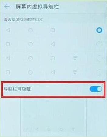 5、点击打开【导航栏可隐藏】的开关,这样我们在需要隐藏虚拟按键的时候就只要隐藏一下,不需要去关闭,下次使用还要麻烦再打开了!