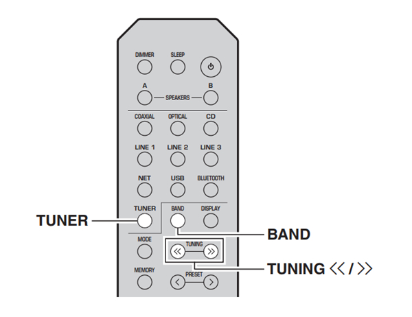 雅马哈R-N402桌面音箱怎么进行电台调频1、按 TUNER 选择 “TUNER”作为输入源。