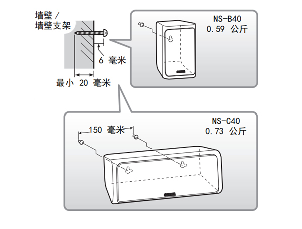 雅马哈NS-P41家庭影院音箱怎么安装在墙壁上按如下所述,可以将扬声器安装在墙壁上。
