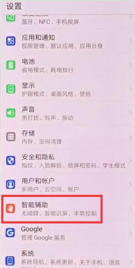 2、在设置菜单下点击打开【智能辅助】,