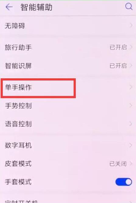 3、可以看到【单手操作】选项,点击打开,