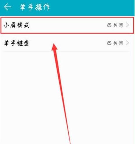 4、在单手操作页面我们点击进入【小屏模式】,