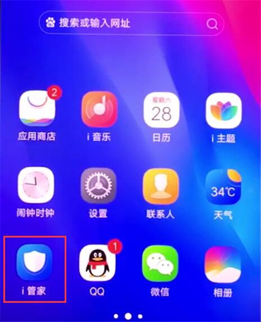 1、首先在手机桌面找到【i管家】选项,点击进入