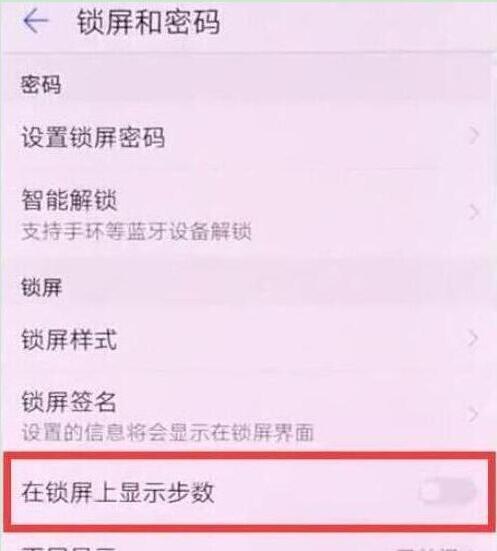 点击打开【在锁屏上显示步数】右侧的开关即可显示。