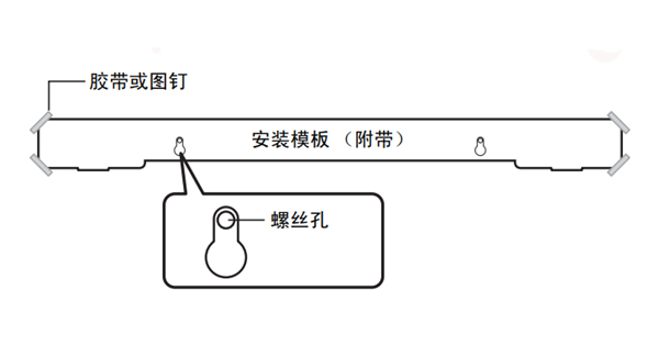 2、从墙上取下安装模板,然后在墙上标记的点位安装市售的螺丝 (如下图所示)。
