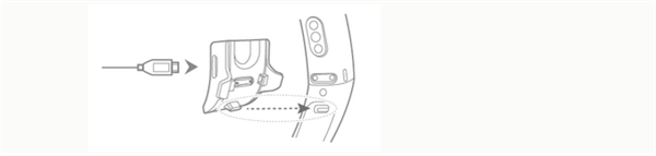 1.请将充电底座上凸起插入到手环腕带定位孔内,然后将卡扣合牢固。