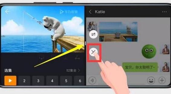 点击中间的按钮,再点击叉的图标即可退出分屏。