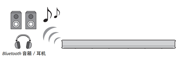 • 使用 AirPlay 输入的音频或 Bluetooth 设备的音频无法传输至其他 Bluetooth 设备进行播放。