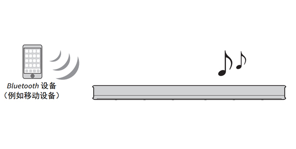 雅马哈YAS-306回音壁音箱怎么播放蓝牙设备上的音乐例如移动设备或数码音乐播放器等 Bluetooth 设备上的音频可以通过无线连接进行播放。