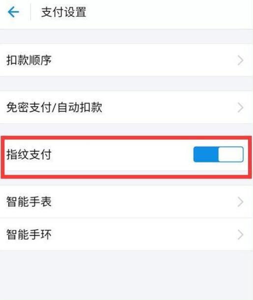 4、最后点击打开【指纹支付】的开关即可设置支付宝指纹支付。