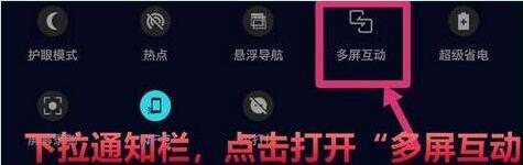 3、接下来在手机上进行操作,从手机屏幕上方下拉通知栏,点击【多屏互动】,