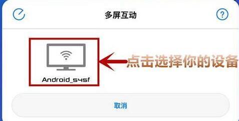 4、在弹出的选项框中点击选择步骤二中看到的电视设备名称,