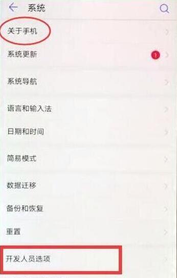 进入系统页面后找到并点击打开【开发人员选项】,没有这个选项的话,点击上面的【关于手机】,不断点击【版本号】,直到出现开发者选项已打开的提示,