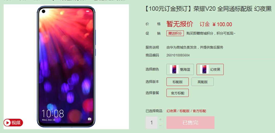荣耀v20有几种颜色?目前,在荣耀官网的页面仅有魅海蓝和幻夜黑两种颜色的手机在预售,预计后期会发布更多的颜色,毕竟连荣耀v10都有魅丽红、沙滩金、极光蓝、幻夜黑、炫影蓝五种颜色,v20系列搞出这么大的动静,肯定也会有更多颜色满足我们的需求。