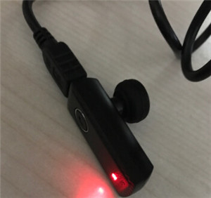 4.耳机充电约需 1 小时可以完成,电量充满之后指示灯亮起蓝色灯光。充电完成后,可以断开 micro USB 充电线的连接。