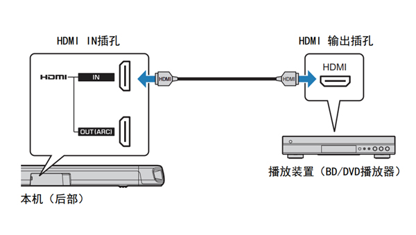 雅马哈YAS-108回音壁音箱怎么连接播放装置通过播放装置的 HDMI 连接