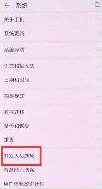在系统菜单下点击打开【开发人员选项】,