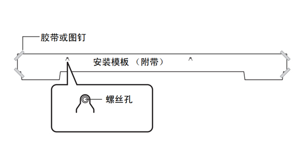 1、将安装模板按在墙上,然后标出螺丝孔的位置。