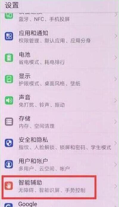 在设置页面找到并点击打开【智能辅助】,
