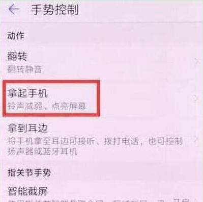 在手势操作菜单下点击打开【拿起手机】,