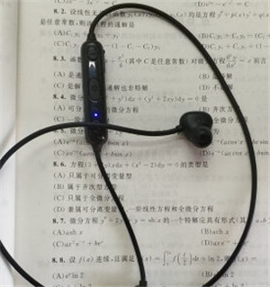 6.耳机电量充满之后,LED 指示灯会亮起蓝色灯光。