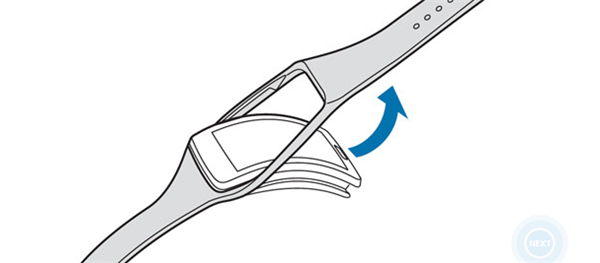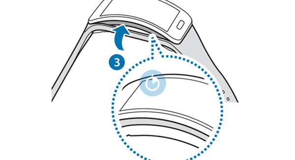 ️1.按住您的Gear S,向上拉动表带,可将其与Gear S分离。