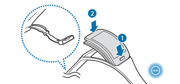 ️3.确保Gear S在安装孔中卡入到位,并与表带正确对齐。