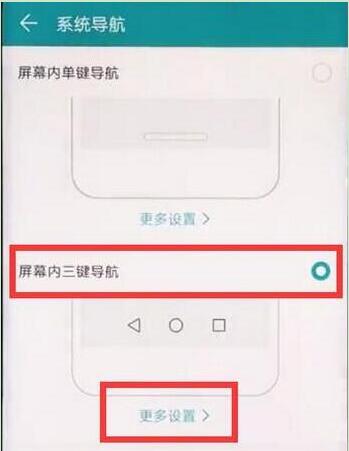 4、在我们已经勾选的屏幕内三键导航下点击【更多设置】,