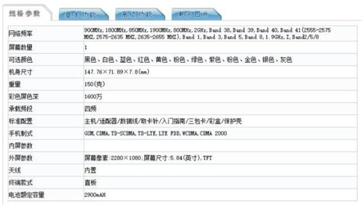 核心配置上,该机搭载八核处理器,CPU主频为2.3GHz,存储空间也提供了32GB/64GB/128GB三个选项,并提供了额外的存储卡支持,最高支持256GB。主摄像头1200万像素,自拍摄像头800万像素。