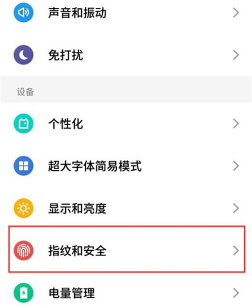 往下拉在设置界面找到【指纹和安全】选项,点击打开