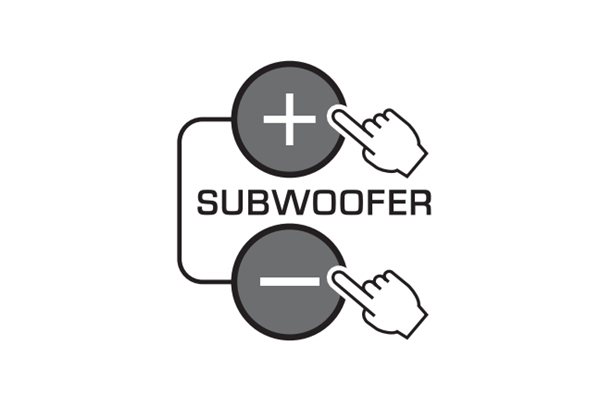 2、在要调节的声道正在输出测试音调的情况下,按 SUBWOOFER 键(+ 或 -),使音量与其他声道保持平衡。