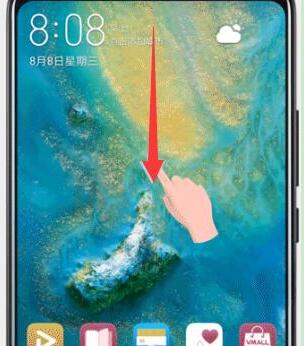 华为nova4怎么识别物体?1、解锁手机后,从华为nova4手机屏幕顶部的中间位置向下滑动主屏幕,
