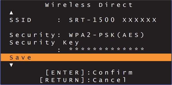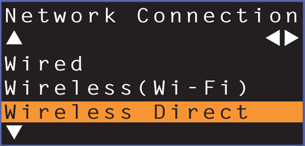 6、使用 【上/下】 键选择 “Wireless Direct”,然后按 ENTER 键。