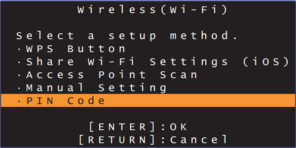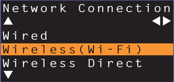 6、使用 【上/下】 键选择 “Wireless (Wi-Fi)”,然后按 ENTER 键。