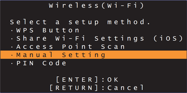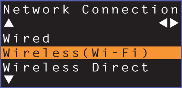 6、使用 【上/下】 键选择 “Wireless (Wi-Fi)”,然后按 ENTER 键。