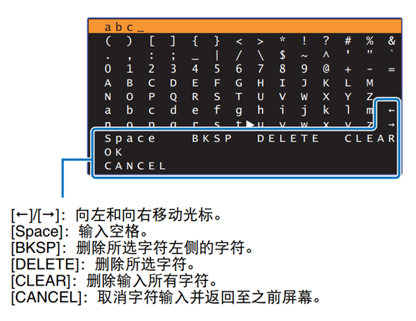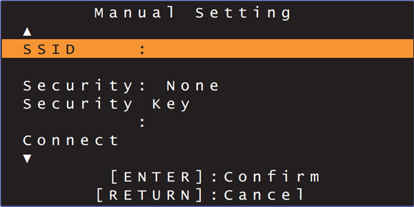 9、使用 【左/右】/【上/下】 和 ENTER 键输入接入点的 SSID。