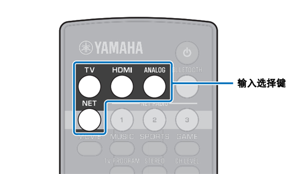 2、使用输入选择键选择输入源 (BLUETOOTH 除外)。