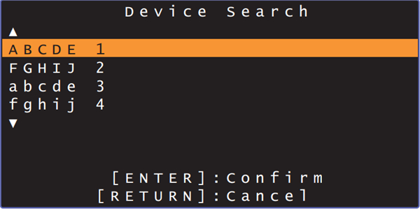 7、使用 【上/下】 键选择 “Device Search”,然后按 ENTER 键。
