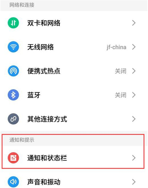 第二步:进入设置选项之后,找到并点击【通知与状态栏】选项