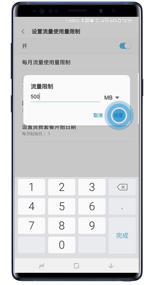 12、点击【<】图标,返回设置流量使用量限制界面。
