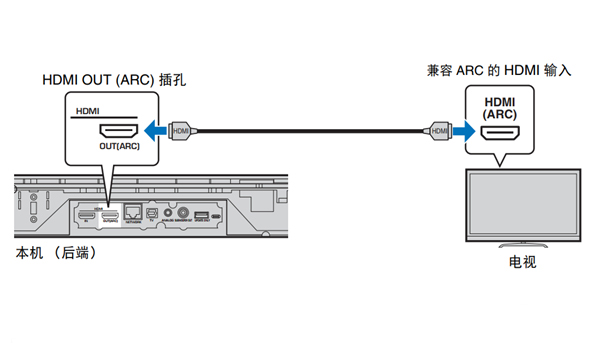 ARC 通过一条 HDMI 缆线激活音频信号输入和输出。如果电视支持 ARC,可以通过与用于从本机向电视输出视频信号的相同 HDMI 缆线将电视音频信号输入到本机中。