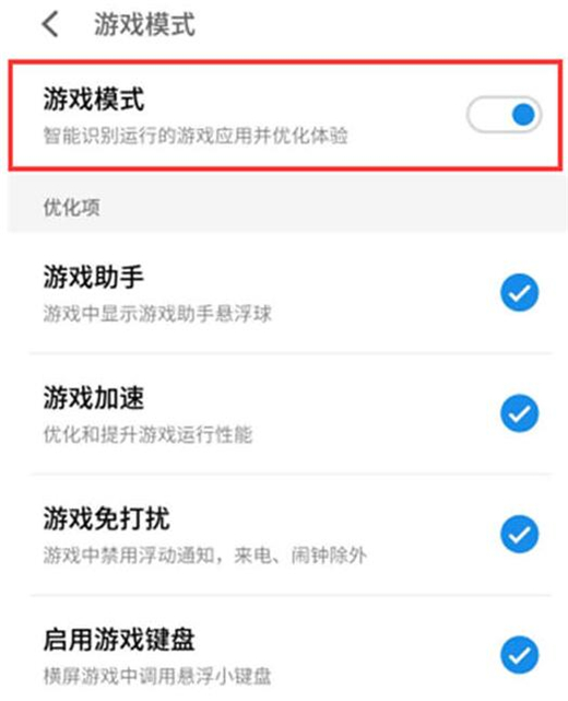 第一项就是【游戏模式】了,点击后面的开关点击打开即可,可根据自己的需要是否设置以下选项。