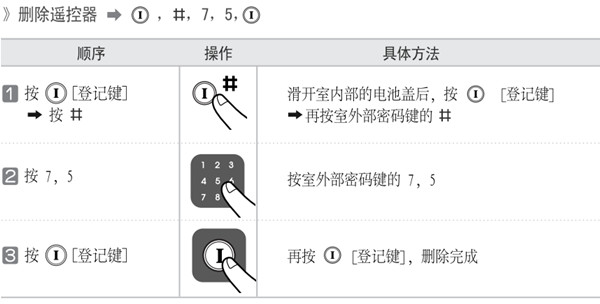 根据指纹锁提示音先按一下【7】键,再按【5】键选择删除遥控器。
