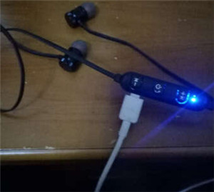 6.耳机电量充满之后,LED 指示灯会亮起蓝色灯光。